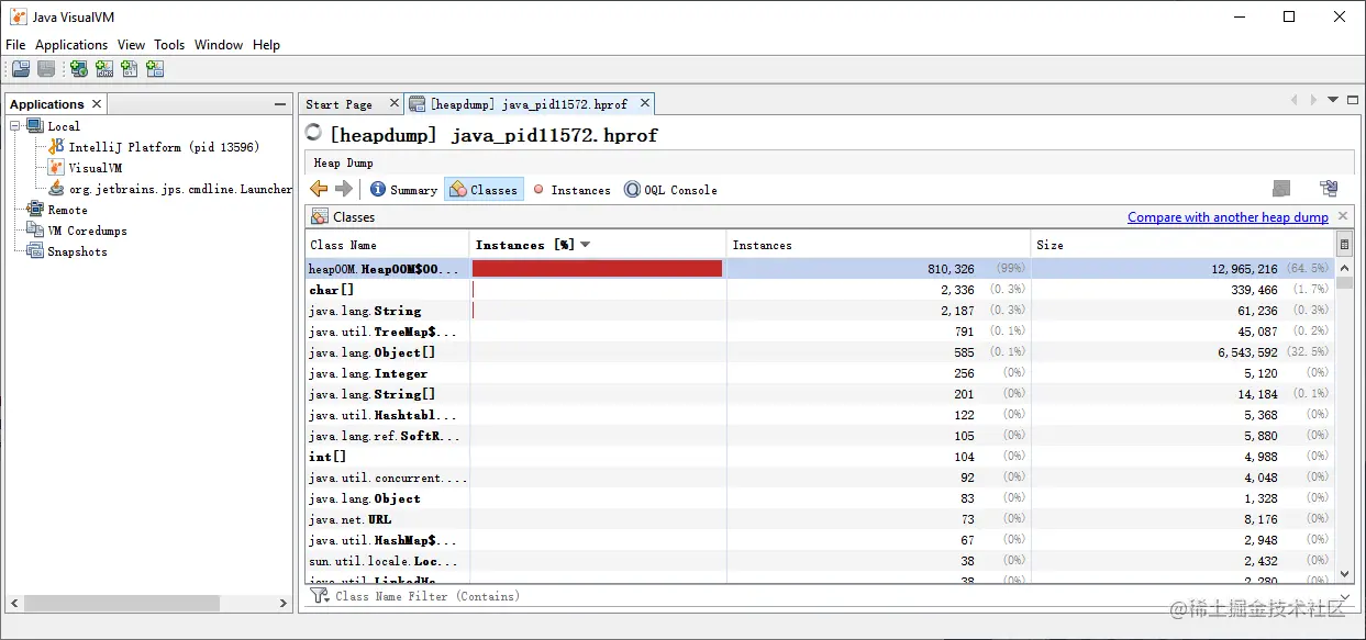 对于 Windows 平台,我们可以从 JDK 的 /bin 目录下找到一个名为 jvisualvm.exe 程序,它可以用于分析 .hprof 后缀的堆快照文件。
