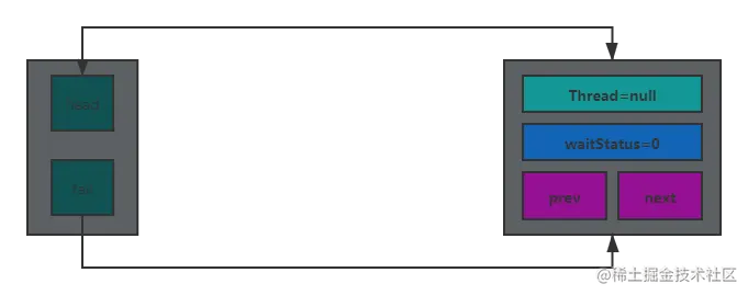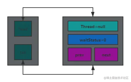 第一次循环后,会创建一个 Thread = null 的头结点,且 head 和 tail 都指向头结点