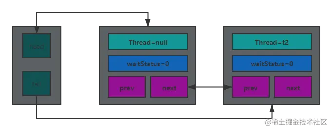 state = 1,exclusiveOwnerThread = t2 - 将 t2 设为头节点,head 指向 t2,并将 Thread = null
