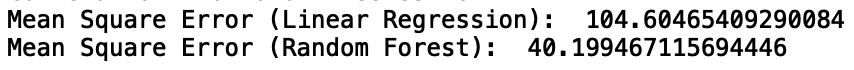 最后,让我们评估随机森林和线性回归模型的均方误差: