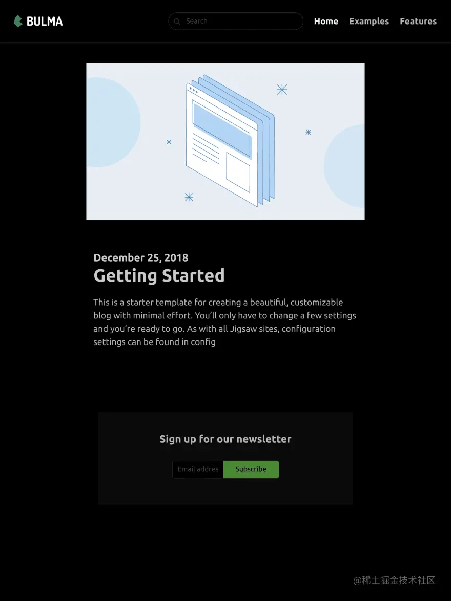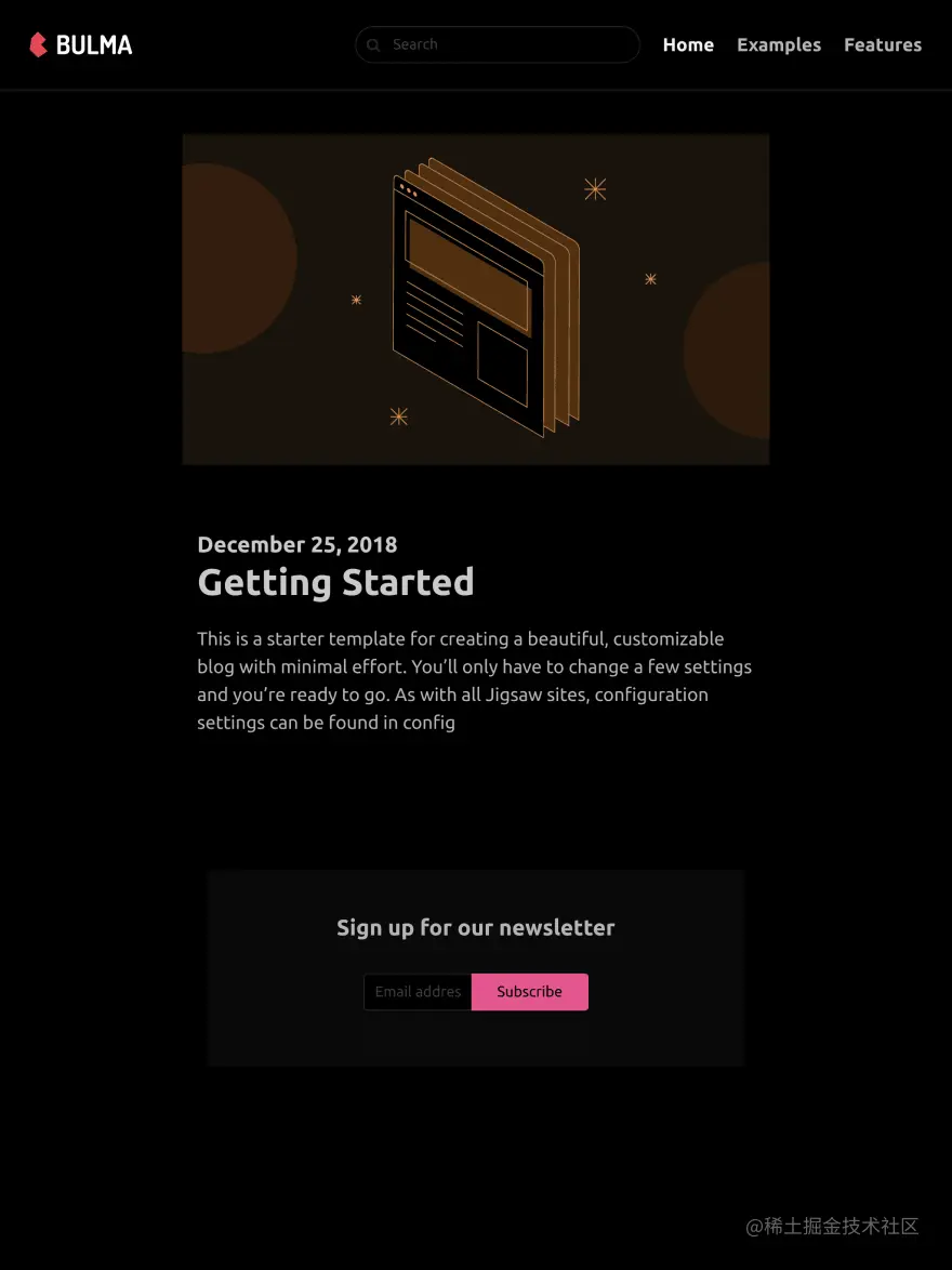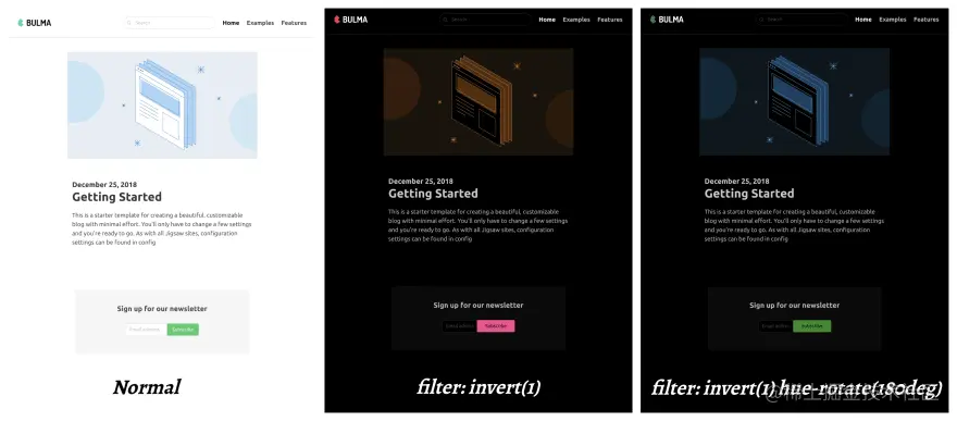 我们使用了 Bulma 实现暗黑模式的的样例,Bulma 是一个基于 Flexbox 的开源 CSS 框架。