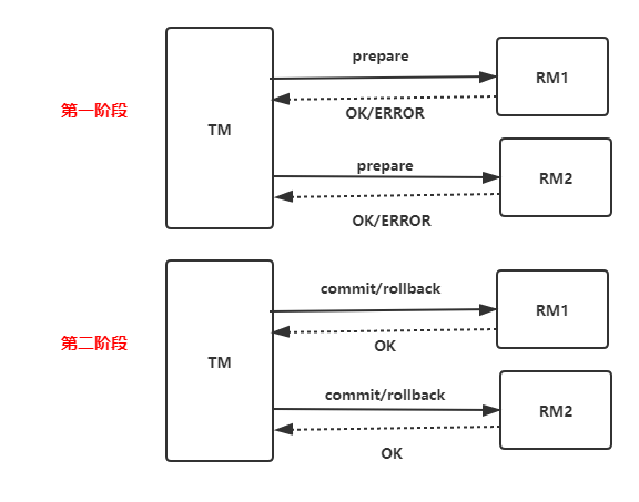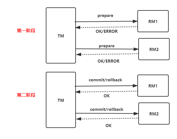 之所以叫二阶段提交,因为它把一个分布式事务得执行设置成了准备和提交两个阶段