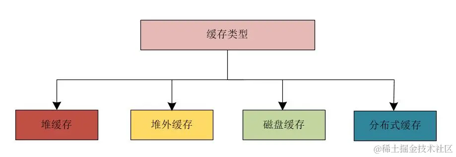 缓存类型总体上来看,可以分为:堆缓存、堆外缓存、磁盘缓存和分布式缓存。