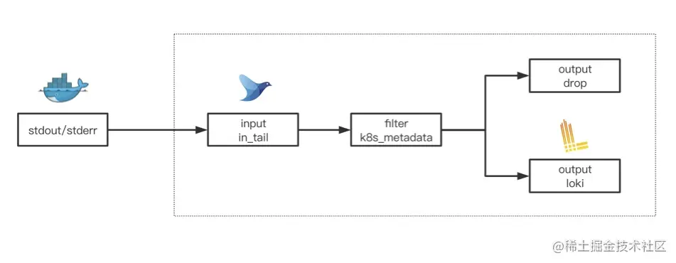 Filter阶段主要用来处理日志采集之后的kubernetes元数据标注以及修改、提取自定义字段,这里面主要用了两个插件fluent-plugin-kubernetes_metadata_filter和fluent-plugin-record-modifier来处理以上逻辑。