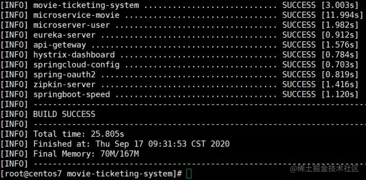 稍等片刻,Maven 就会帮我们把整个项目打包好,看到下面的结果即为打包成功