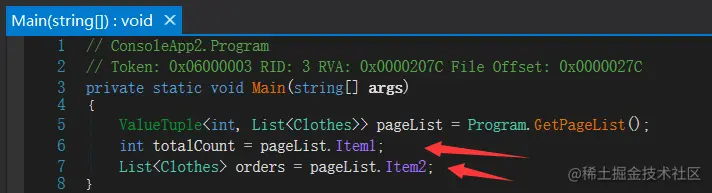 从 GetPageList 方法的 IL 代码可以很容易的看出方法返回值和return处都有 System.ValueTuple 标记,从此以后你可能就会以为 (x,y) 就是 ValueTuple 的化身 ,是吧,问题就出现在这里,这个经验靠谱吗?