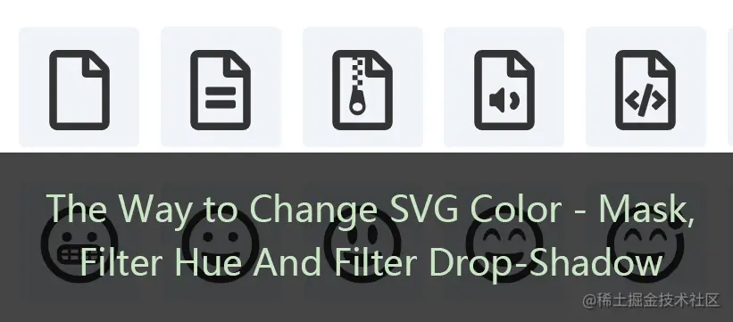以图片方式插入HTML的SVG是不能通过CSS设置颜色的,相当于已经渲染的图片。改变颜色的方法思路和PNG图片一样,下面对比三种实现方法。