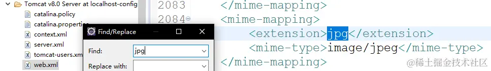 查看不同文件对应的 MIME 类型,推荐大家一种方式,以 Tomcat为例,它下面的 web.xml 文件可以查看所有的MIME类型,通过 Ctrl + F 搜索快速找到你想知道的文件对应的 MIME 类型。