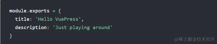 - 一个 VuePress 网站必要的配置文件是 .vuepress/config.js,它应该导出一个 JavaScript 对象: