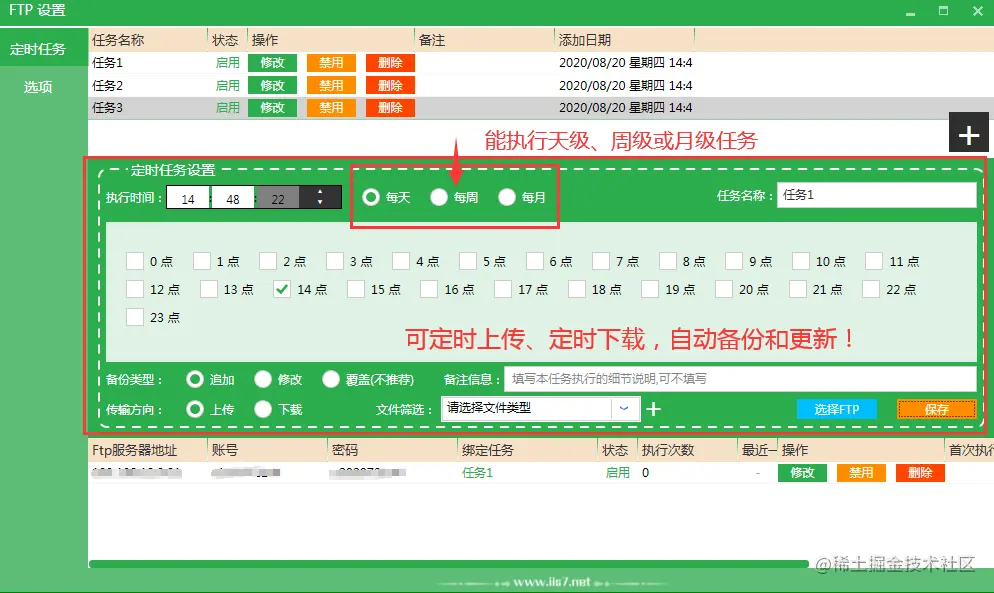 ftp工具,ftp工具是用来干嘛的? 人生就是这样寂寞如雪 2020-09-17 317 阅读1分钟 ftp工具,主要是用来向ftp服务器传输数据和文件的,ftp工具可以帮助我们方便快捷地完成数据的上传和下载,如下图: 除此之外,还可以定时上传、定时下载、自定义传输模式,线程,编码等。 下载地址:iis7服务器管理工具
