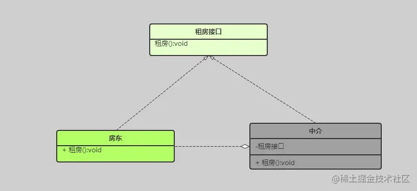 //创建中介类,并将房东传入作为中介内部的一个对象