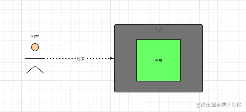 //这里用租房接口来接收房东对象,是因为代理只对房东的租房方法感兴趣,如果房东对象还有一个公开的打麻将方法,那也是房东类自己的事情。