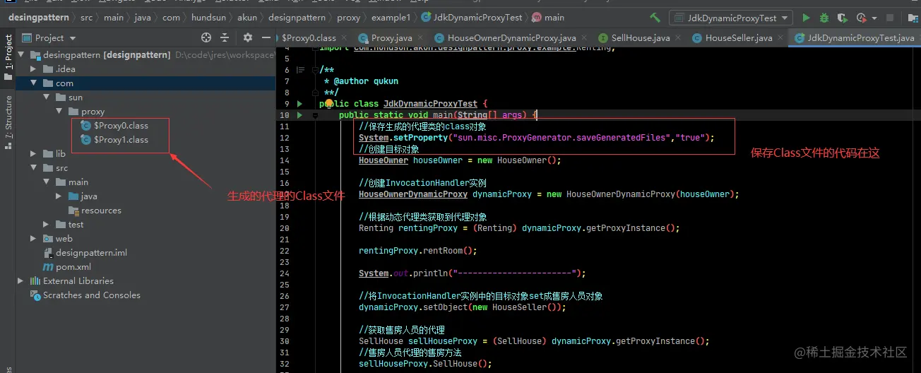 代理类在程序运行时创建的代理方式被成为动态代理。 我们上面静态代理的例子中,代理类(HouseOwnerProxy)是自己定义好的,在程序运行之前就已经编译完成。然而动态代理并不是在Java代码中定义的,而是在运行时根据我们在Java代码中的“指示”动态生成的。