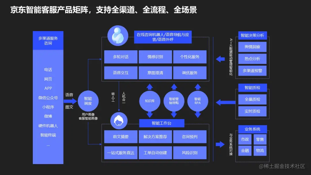 为了解决传统客服客服人工成本高、服务质量参差不齐、跟踪管理困难等问题,京东智联云以AI技术驱动,从文字到语音,从对话智能到情感智能,聚焦体验、效率与转化,实现多模态服务交互,打造了一整套智能客服全链路解决方案,帮助企业服务智能化转型升级。