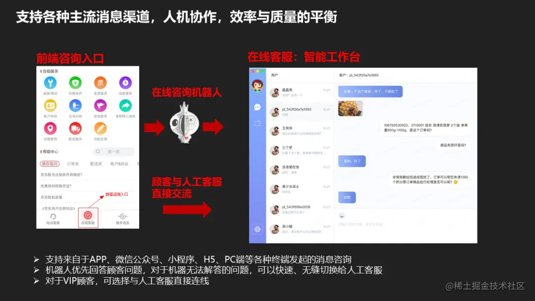 今年 618 大促期间,京东在线智能客服全面应用于各场景,提供了 24 小时全天候服务,累计服务次数达 3.8 亿次。在这数字的背后,客服咨询中有 9 成以上咨询量都由智能客服接待。智能客服包括很多产品,其产品支持全渠道、全流程、全场景。