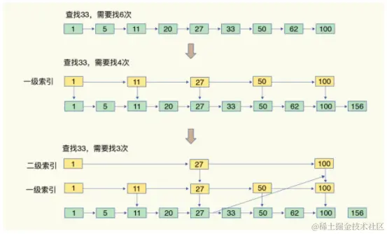 哈希表的时间复杂度为O(1),跳表如下
