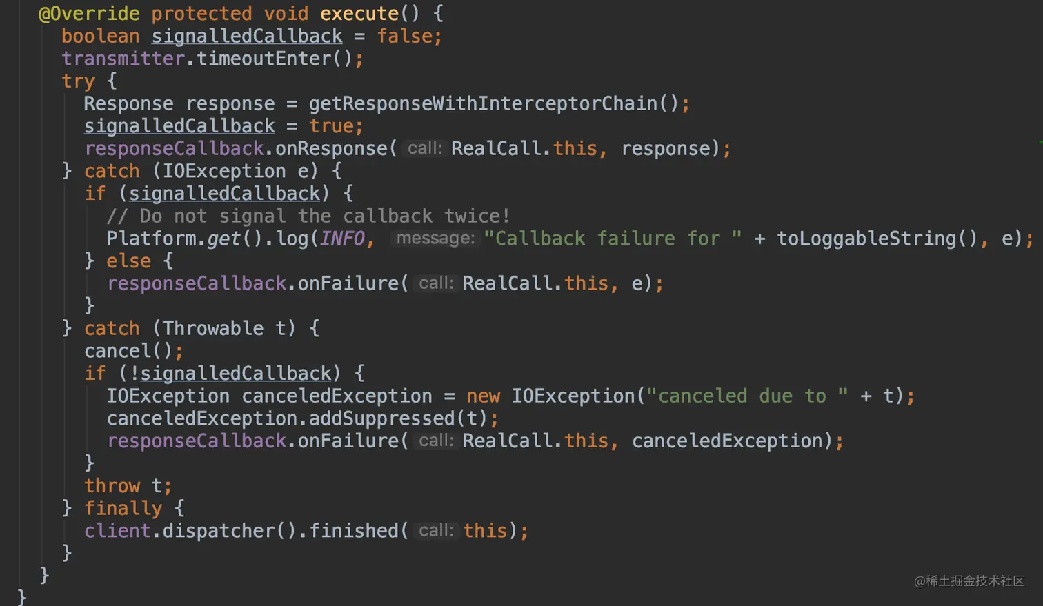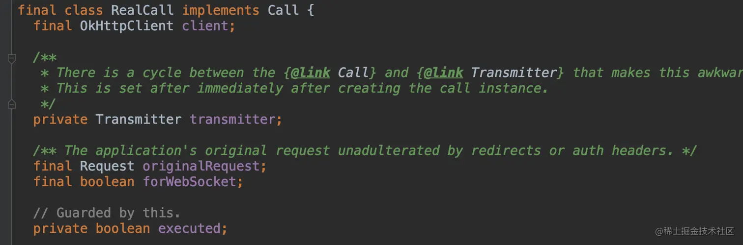 ReallCall,顾名思义,我们可以先理解为真正的请求,那么我们接下来来看源码求证一下,看看是不是真的是这样;