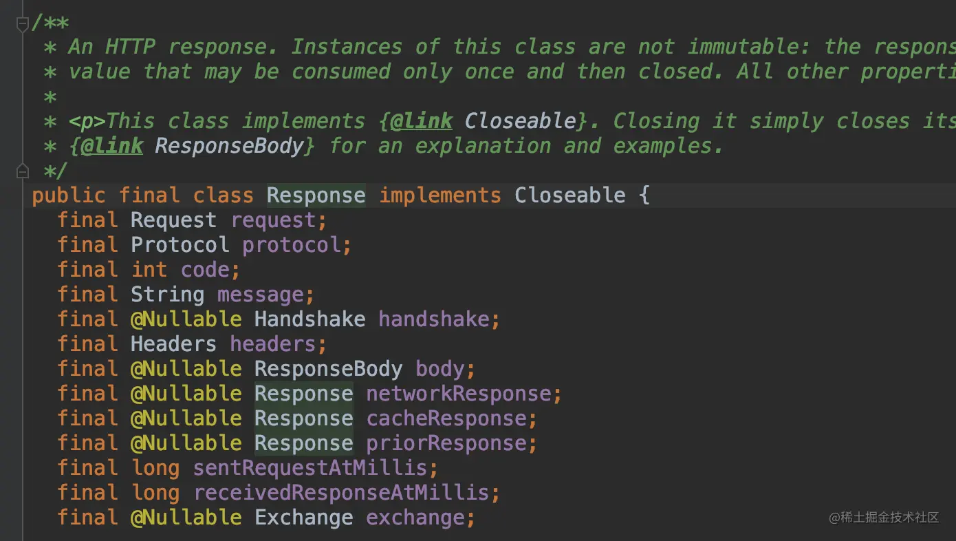 从图片可以看出,Response和Request有点类似,封装了一些参数返回,比如code,message,headers,body等等;