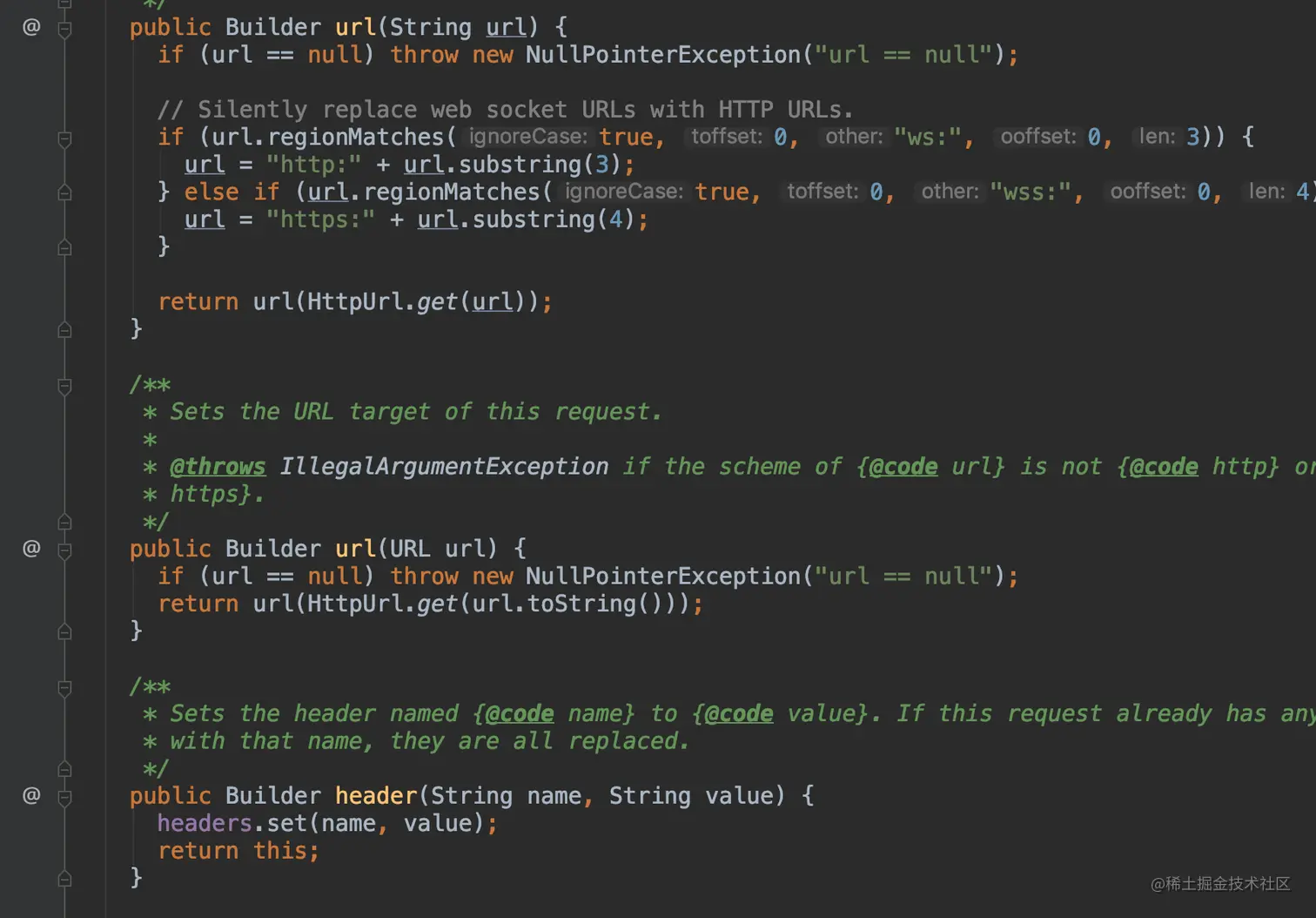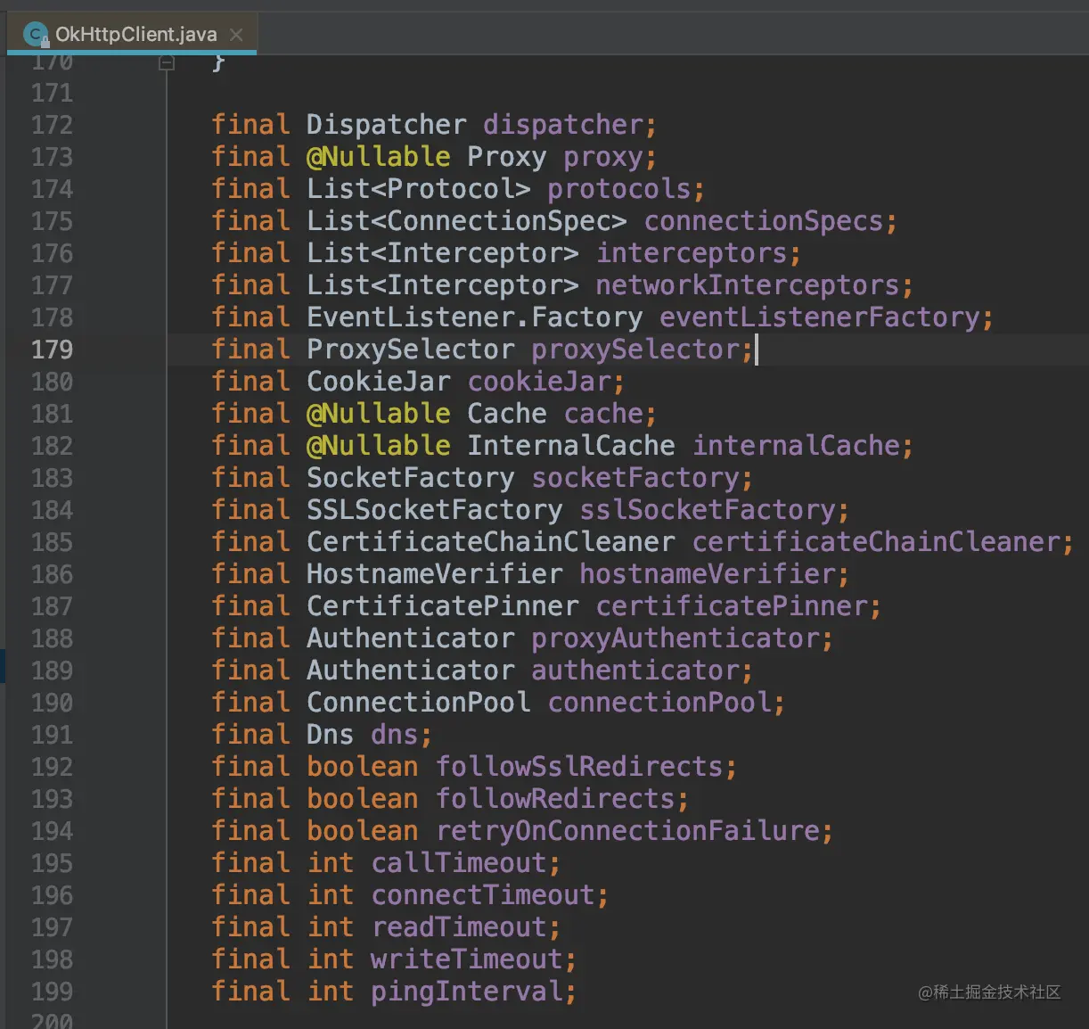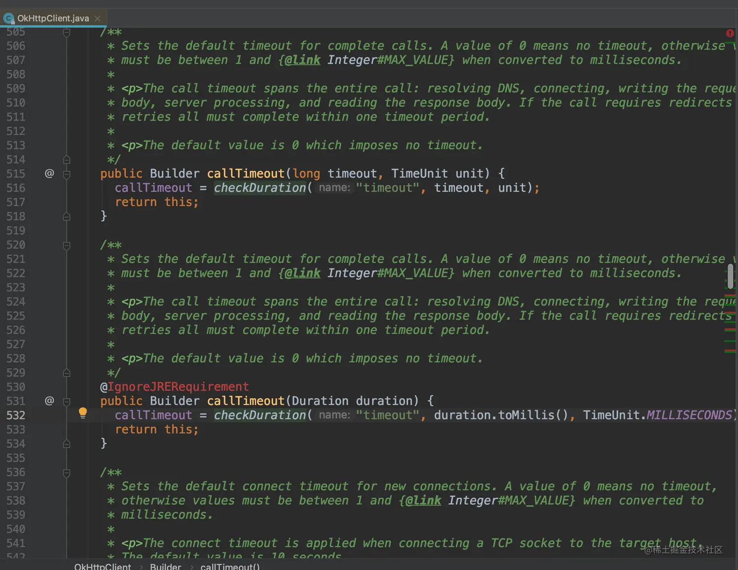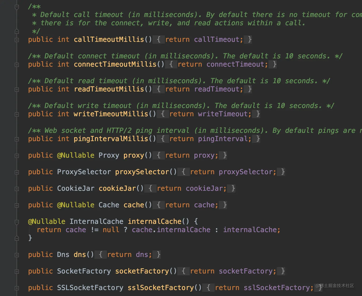 没错,这个OkHttpClient里面就是这样的代码,类似于bean类,主要做一些参数的赋值与获取;