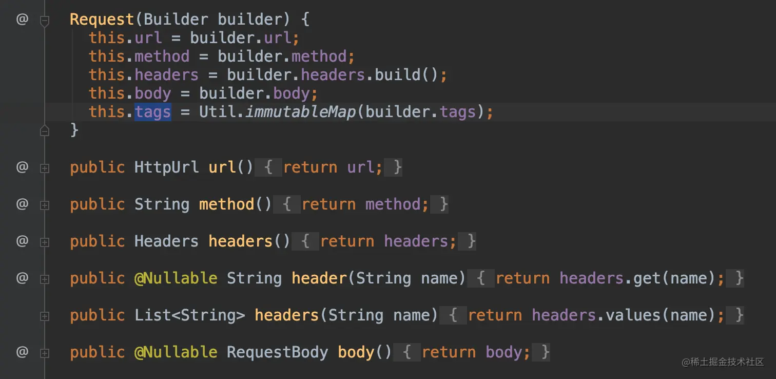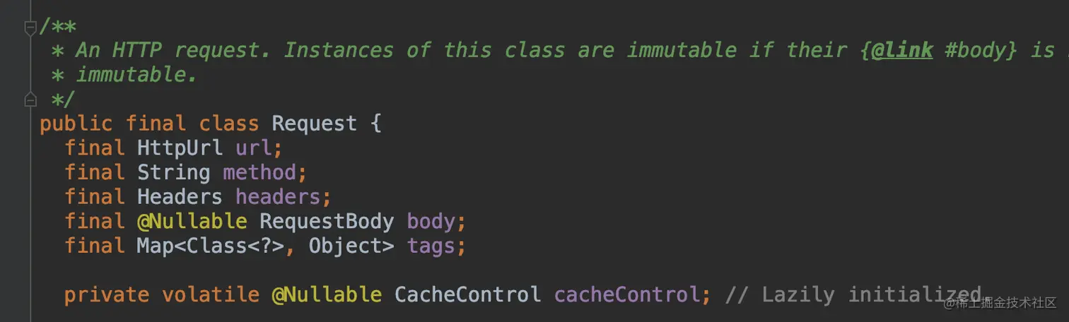 先来看一下这个成员变量,很少,就几个,但是从命名可以看出,这里面定义了请求的URL,请求的method,还有请求头headers,请求体body等参数;