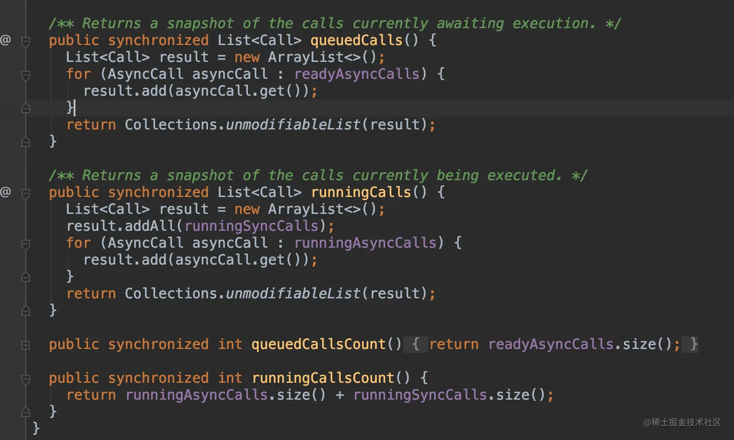 - runningSyncCalls:正在进行的同步请求;