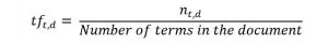这里,在分子中,n是术语“t”出现在文档“d”中的次数。因此,每个文档和术语都有自己的TF值。