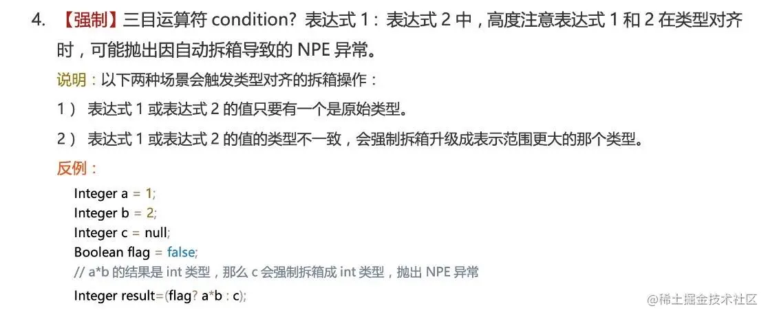 翻了下阿里规约:(拆箱装箱都有可能引发 NPE)