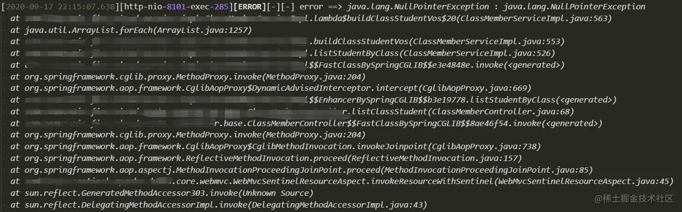 看到这日志信息,这不是很明显,类名 + 行数 都提示了嘛... 按常规套路,翻出对应代码... (需确保代码跟线上版本一致)