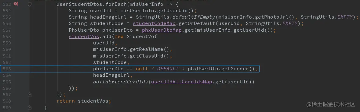 StudentVo vo = new StudentVo(phxUserDto == null ? DEFAULT : phxUserDto.getGender());