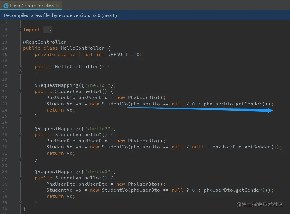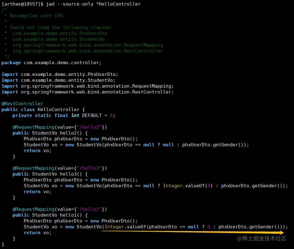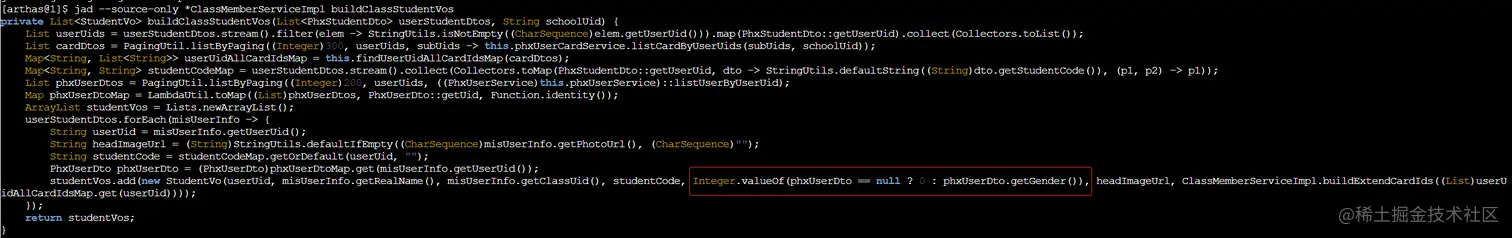 再使用 jad 命令反编译对应方法 (由不得感叹arthas 真香):