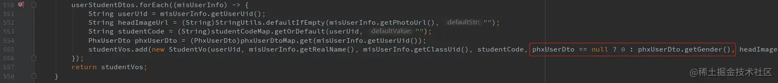 StudentVo vo = new StudentVo(phxUserDto == null ? null : phxUserDto.getGender());