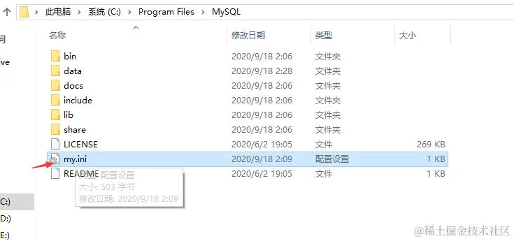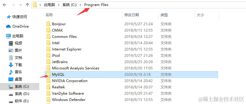 将下载好的压缩包,解压到C:\Program Files下,并重命名为MySQL