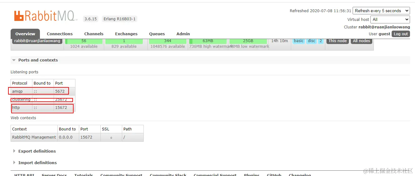 (2)两个端口,控制台:15672,消息通讯:5672