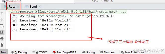 System.out.println(" [*] Waiting for messages. To exit press CTRL+C");