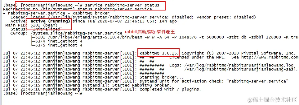 [root@ruanjianlaowang ~]# service rabbitmq-server status