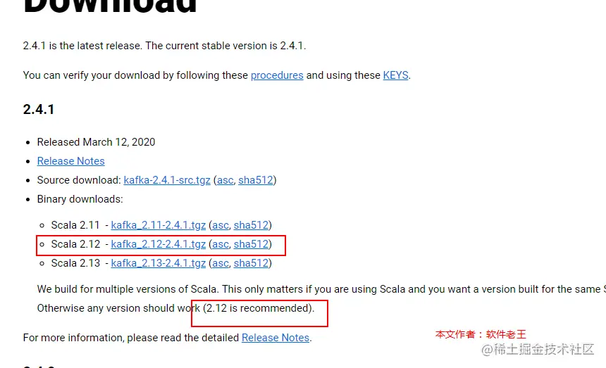 地址:kafka.apache.org/downloads,下载最新的2.4.1。