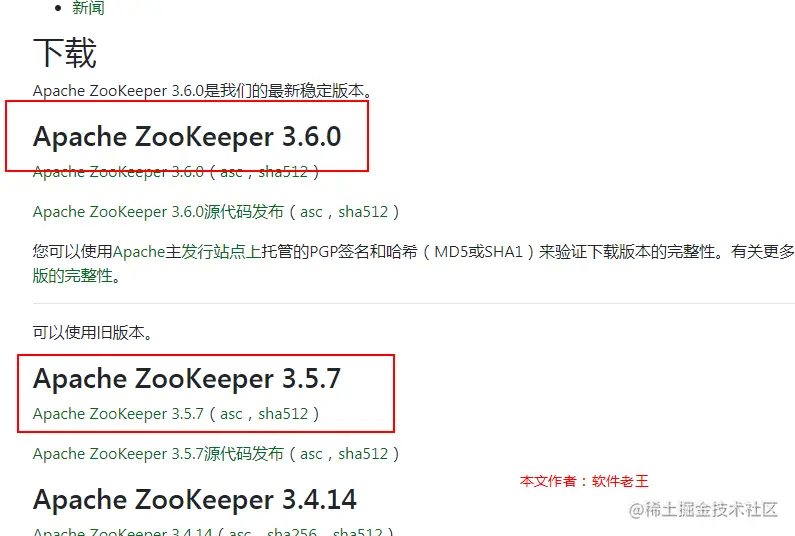 zookeeper.apache.org/,最新的是3.6.0,不过发布不久,建议先跟kafka内置zookeeper保持一致,使用3.5.7版本。