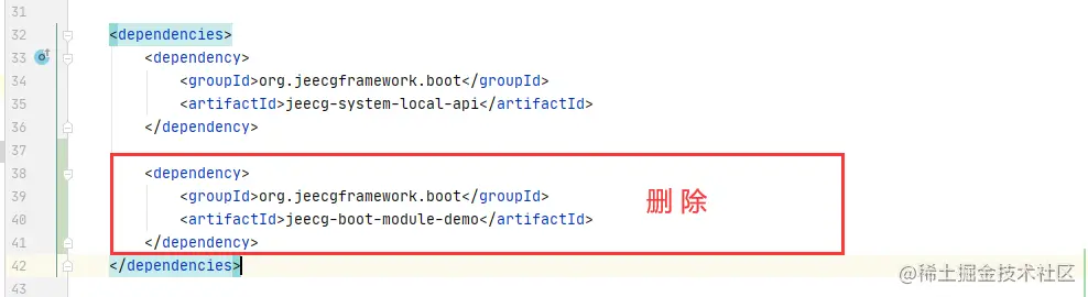1.将system项目的pom文件中的其他模块的依赖删除,只保留local-api