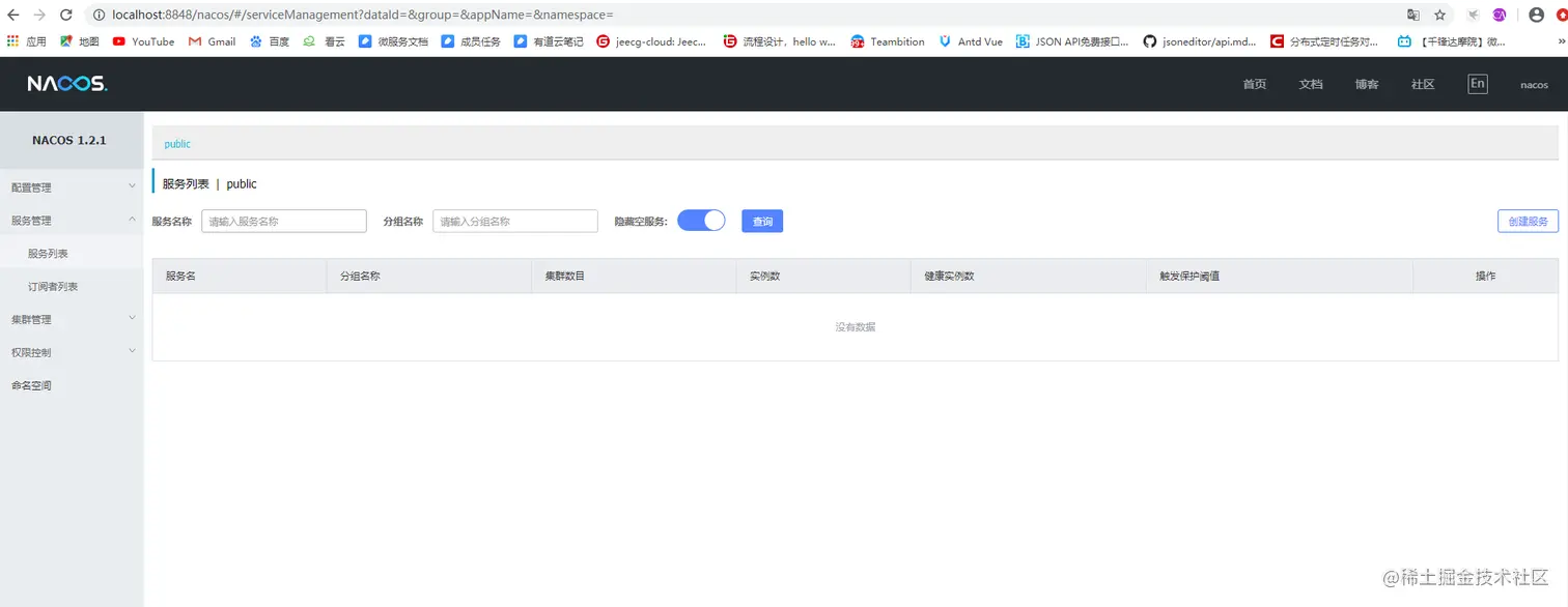 1.启动nacos,访问localhost:8848/nacos 账号密码 都是nacos,查看服务列表
