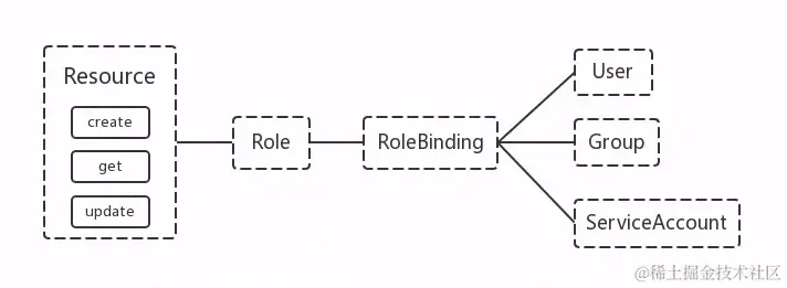 在RBAC API中Role表示一组规则权限,权限只会增加(累加权限),不存在一个资源一开始就有很多权限而通过RBAC对其进行减少的操作;Role可以定义在一个namespace中,如果想要跨namespace则可以创建ClusterRole