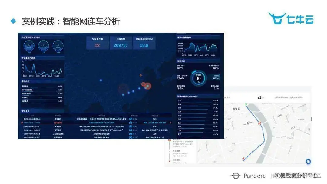 最后一个案例是智能网联车,Pandora 可以判断车子的数据,比如什么时候打了方向盘,什么时候踩了刹车等等,在 Pandora 里都可以一目了然。