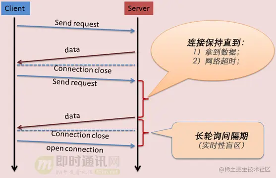 对于Web端即时通讯技术来说,上面提到的无论是短轮询,还是长轮询,它们都存在“实时性”盲区。
