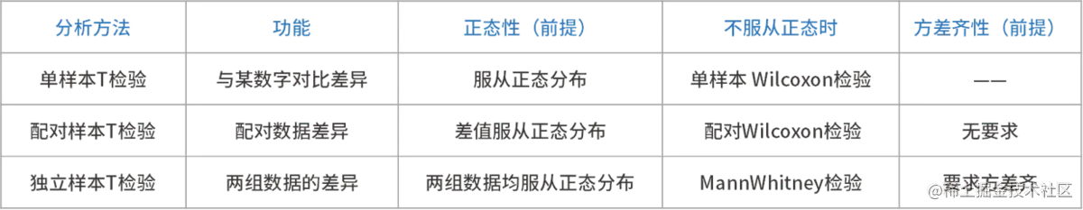 不同的T检验方法适用于不同的分析场景,具体的分类如下: