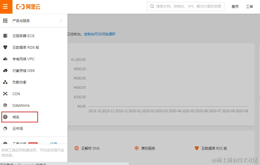 (1)进入阿里云控制台下的域名管理