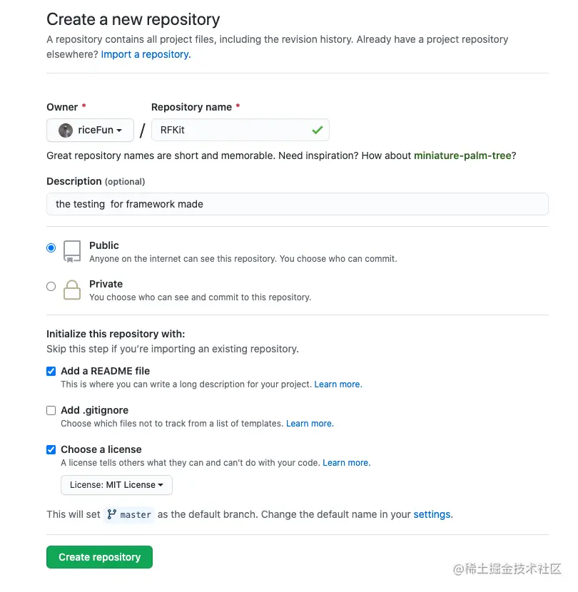 2.1. 在公有云上新建framework仓库,我这里用的是github.