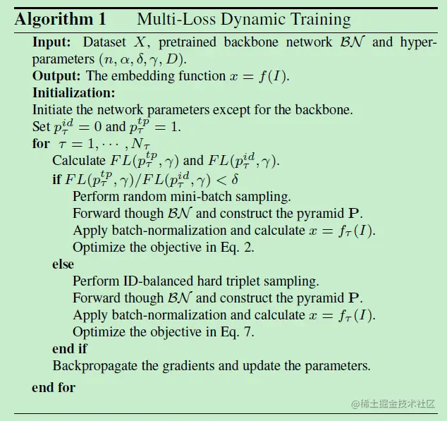 作者认为有效的triplet loss是比较少的,这是由于id很多,但是每个id包含的样本比较少。为了解决这个问题,文章提出了ID平衡采样策略来保证三元组出现在batch中,但这种策略会抑制id loss,因为每一个batch中会有更少的id被用到,使用该策略使得直接weighting loss很难收敛,因而动态weighting的解决方案。