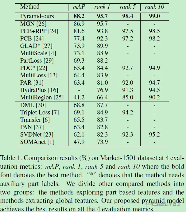 2019 CVPR的一篇SOTA,文章提出了金字塔模型pyramid model和多loss动态训练的方法Multi-Loss Dynamic Training。pyramid model主要解决粗粒度到细粒度的全面feature切片提取,Multi-Loss Dynamic Training主要解决triplet loss难样本采样均衡和动态学习weighting loss parameter的问题。文章在多个benchmark上刷新当时的SOTA。