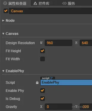 1. `enable: 开启 debugDrawFlags: 调试标志, gravity: 重力加速度,二维向量`