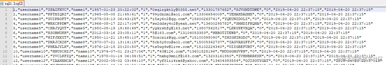 load data local infile 'sql1.log' into table `tb_user_1` fields terminated by ',' lines terminated by '\n';