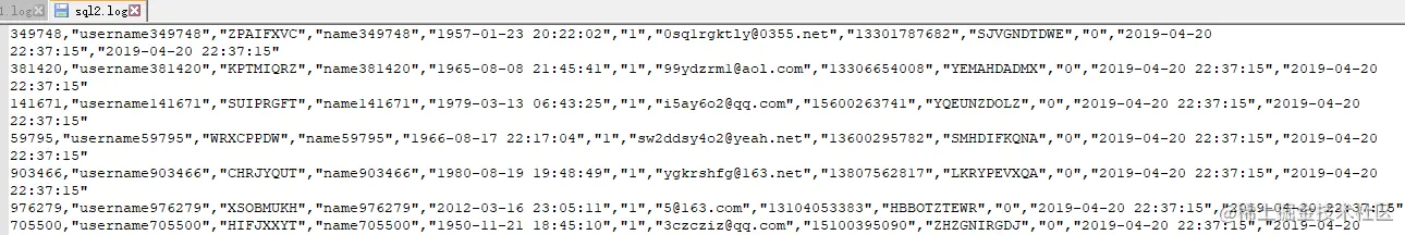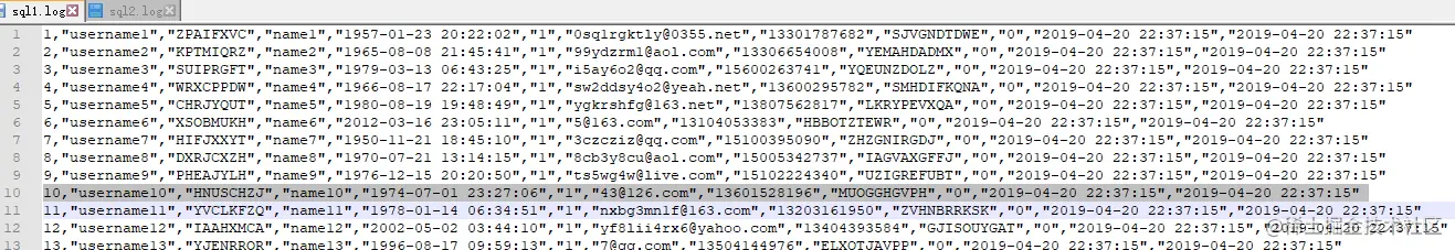load data local infile 'sql1.log' into table `tb_user` fields terminated by ',' lines terminated by '\n';